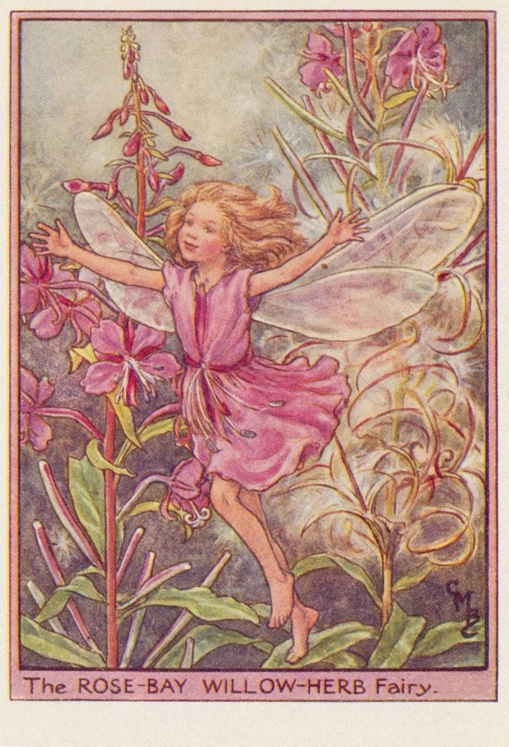 On Fireweed (Rose-bay Willow-herb) from “Flower Fairies of the Wayside” by Cicely Mary Barker, 1974